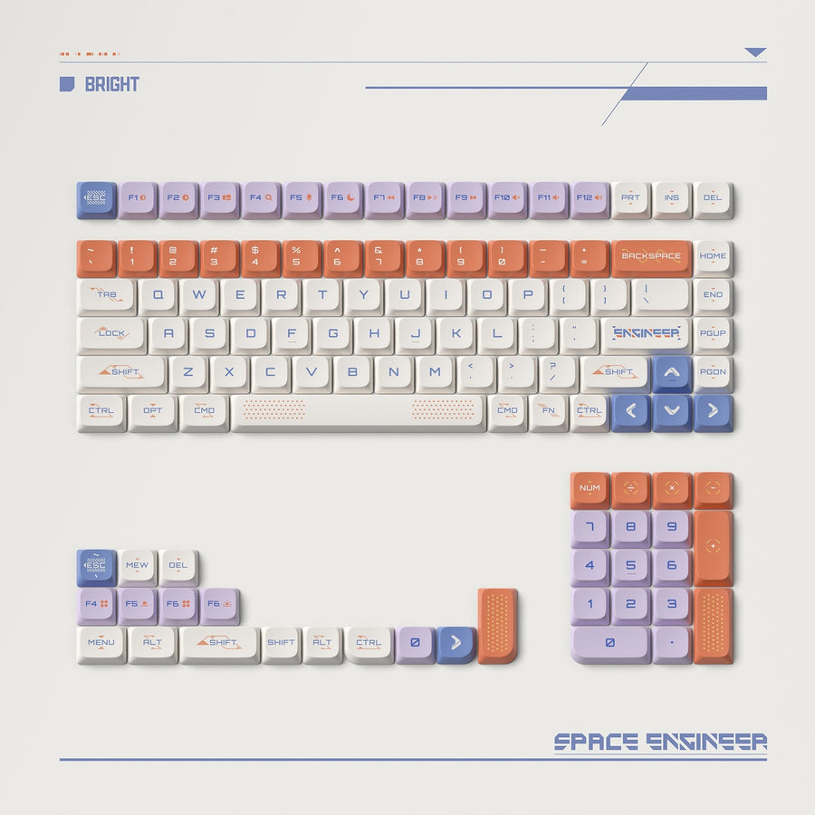 Keycapy Space Engineer o profilu nSA zawierają łącznie 117 klawiszy, zestaw keycapów obsługuje NuPhy Air60, Air75, Air96, Air60 V2, Air75 V2 i Air96 V2 i jest kompatybilny z innymi niskoprofilowymi kompaktowymi klawiaturami mechanicznymi w układach: 60 / 75 / 96.
