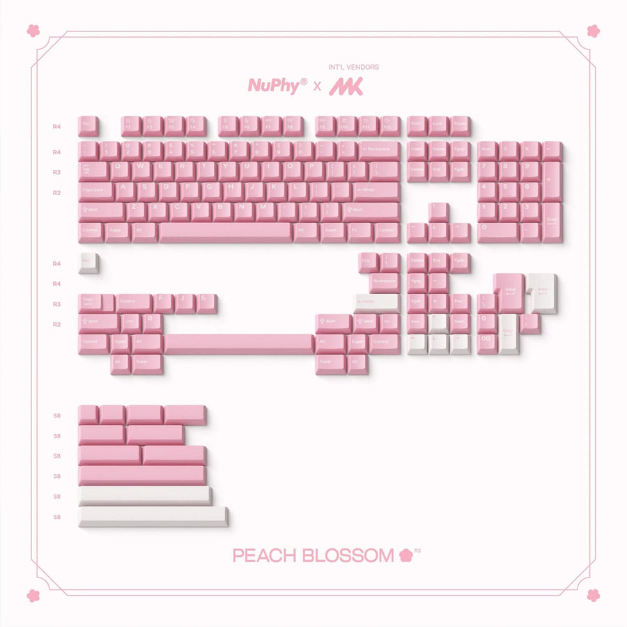 Berry profile Peach Blossom Keycaps zawiera łącznie 163 klawisze, zestaw keycapów obsługuje NuPhy Air60, Air75, Air96, Air60 V2, Air75 V2, Air96 V2, A i Air75 HE oraz jest kompatybilny z innymi niskoprofilowymi kompaktowymi klawiaturami mechanicznymi w następujących układach: 60 / 75 / 96.